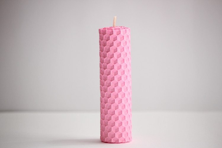 شمع قلمی صورتی با مومعسل طبیعی ساخته شده و رنگ ملایمش حالوهوایی لطیف و دلنشین به فضا میدهد.
