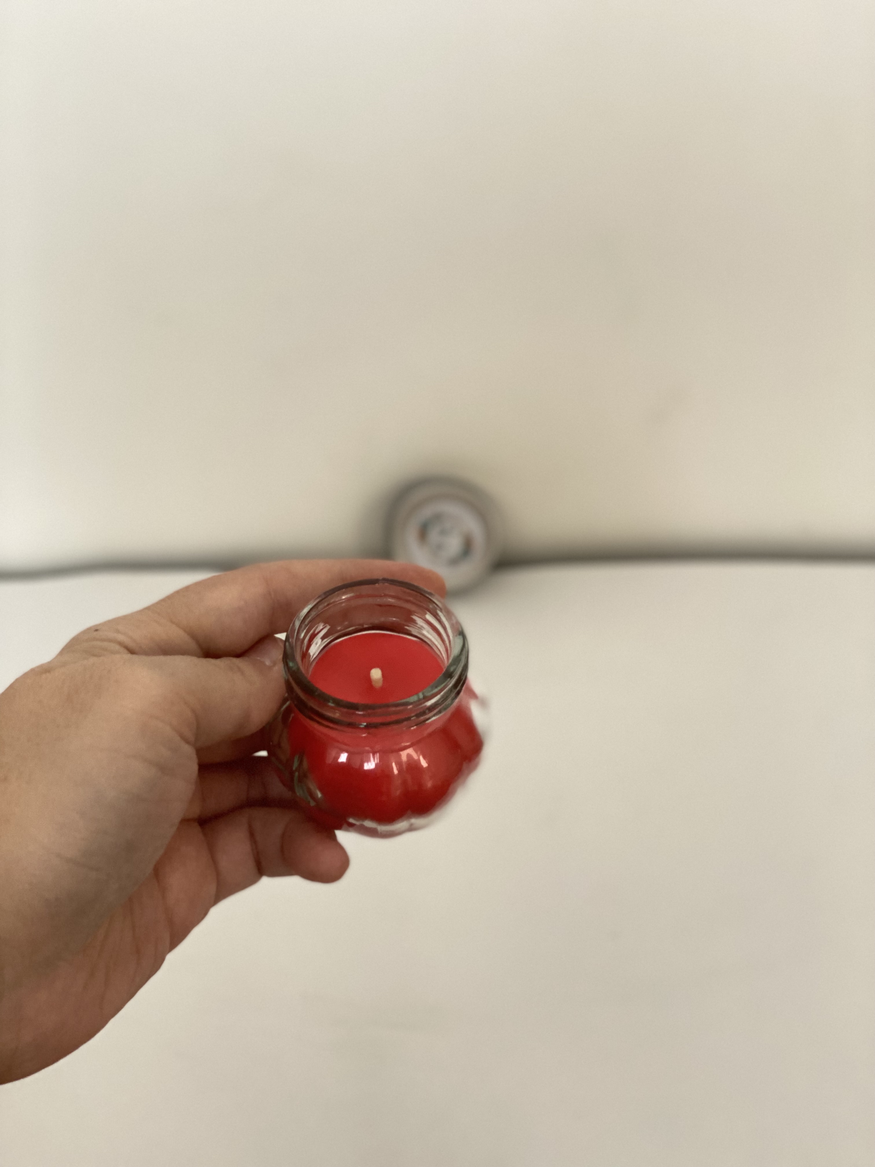 شمع جار شیشهای مدل کدو به رنگ قرمز، انتخابی گرم و چشمگیر برای دکور و هدیه است.🎃